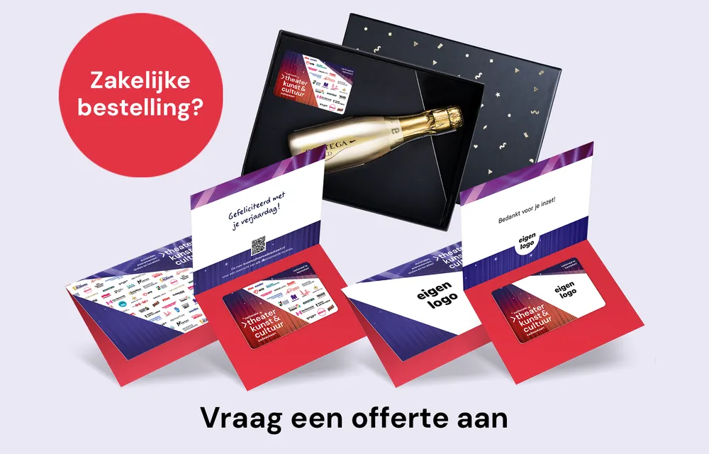 Ontdek de wereld van cultuur en inspiratie met onze Theater, Kunst & Cultuur Cadeaukaart. Of je nu een cultuurliefhebber bent, op zoek bent naar een uniek geschenk voor vrienden, familie of zakelijke relaties, of jezelf wilt verwennen, deze cadeaukaart biedt je talloze mogelijkheden voor onvergetelijke culturele ervaringen. Dankzij het uitgebreide netwerk van deelnemende locaties in heel Nederland opent deze kaart de deuren naar een divers aanbod van voorstellingen, tentoonstellingen en concerten. Of je nu kiest voor een intieme voorstelling in een historisch theater of voor een moderne performance op een eigentijds podium, je vindt altijd een evenement dat perfect aansluit bij jouw persoonlijke smaak.